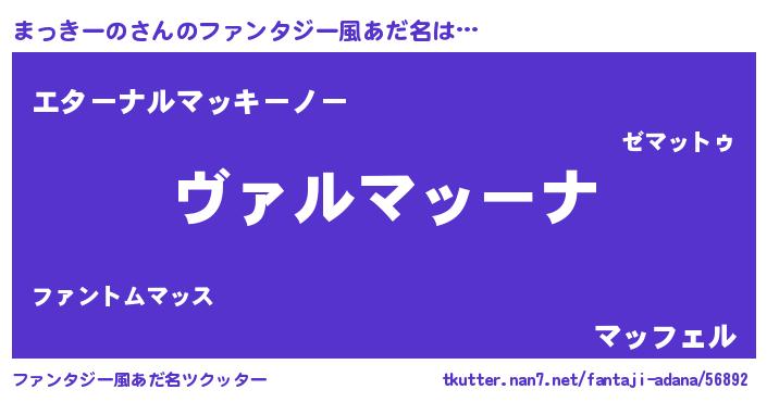 まっきーのさんのファンタジー風あだ名をツクッター!