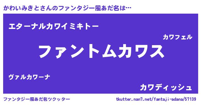 | 男性向けラノベタイトル風あだ名 | 『かわいみきとの嫁は女の子じゃないと思った?』 |