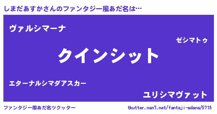 | 女子向けラノベタイトル風あだ名 | 『しまだあすか恋絵巻』 |
