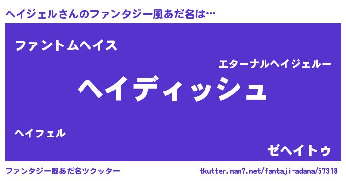| 意味不明あだ名 | 『永久保存ヘイジェル』『自称ヘイジェル』 |