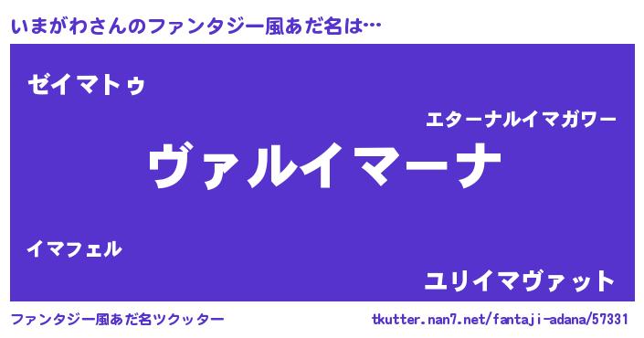 | ヒーロー風カッコイイあだ名 | 『仮面イマダー』『超時空戦士イマガワ』 |