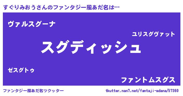 | 男性向けラノベタイトル風あだ名 | 『すぐりみおうという概念が存在しない退屈な世界 』 |