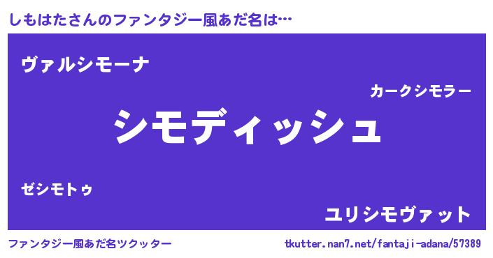 | ヘコむあだ名 | 『しもはた(遠い目)』『しもぷりん』 |