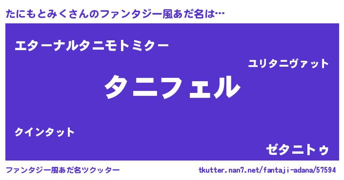 | 男性向けラノベタイトル風あだ名 | 『タニモトミクアートオンライン』 |