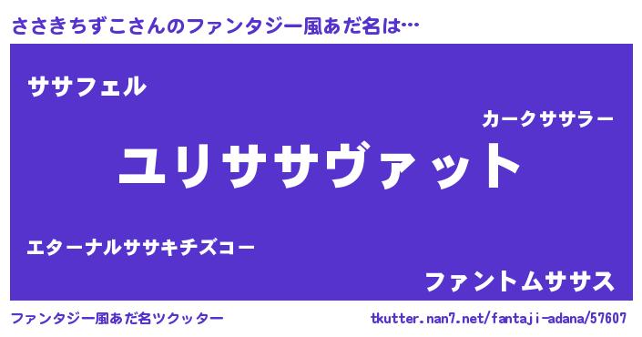 | ヒーロー風カッコイイあだ名 | 『スーパーササキチズコ』『黄金騎士ササ』 |