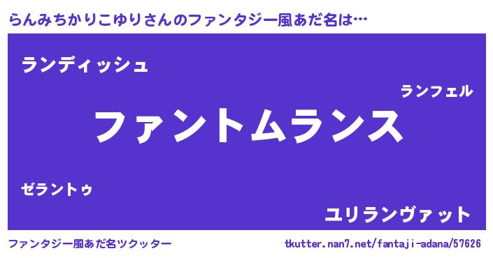 | ヘコむあだ名 | 『らんぷりん』『らんみちかりこゆり(苦笑)』 |