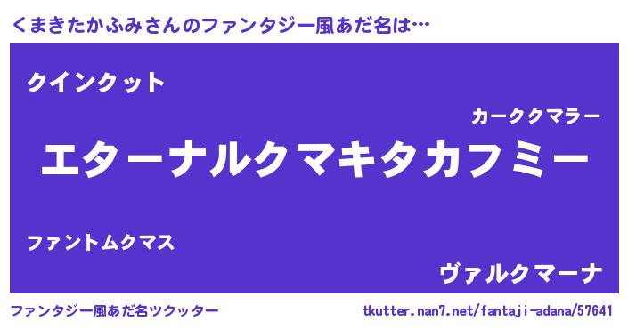 | 男性向けラノベタイトル風あだ名 | 『やはりくまきたかふみの青春ラブコメはまちがっている 』 |