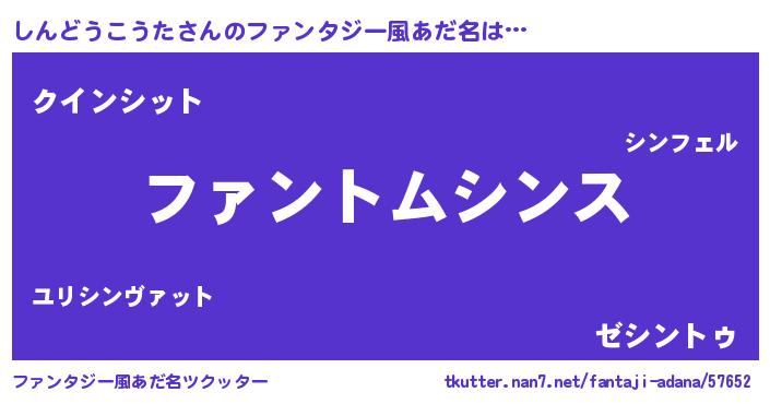 | ポケモン風あだ名 | 『ヒシンドウコウタ』『シックウザ』 |