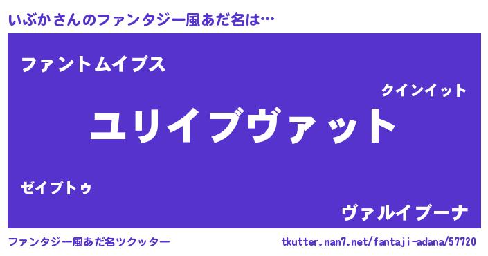| 男性向けラノベタイトル風あだ名 | 『イブカスレイヤー』『魔弾の王といぶか』 |
