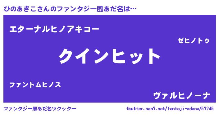 | 男性向けラノベタイトル風あだ名 | 『おまえをオタクにしてやるから、俺をひのあきこにしてくれ! 』 |