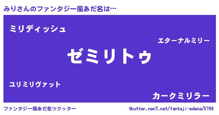 | ヒーロー風カッコイイあだ名 | 『超時空戦士ミリ』『ネオミリ』 |