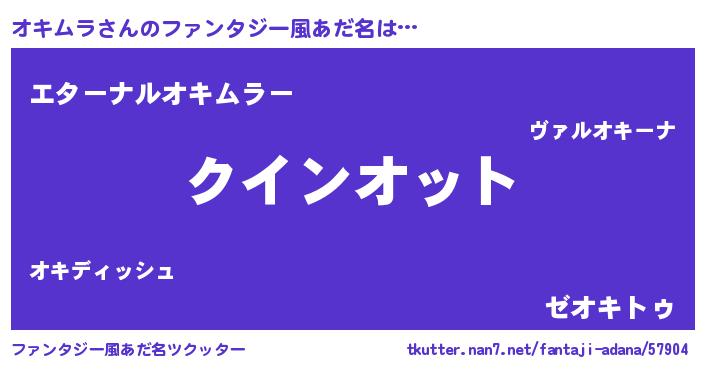 | 男性向けラノベタイトル風あだ名 | 『ノーゲーム・ノーオキムラ』 |