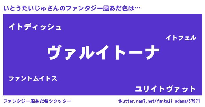 | 男性向けラノベタイトル風あだ名 | 『この素晴らしい世界にいとうたいじゅを!』 |