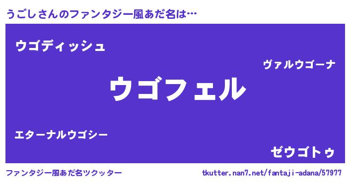 | ポケモン風あだ名 | 『ウゴチュウ』『ゼニウゴ』 |