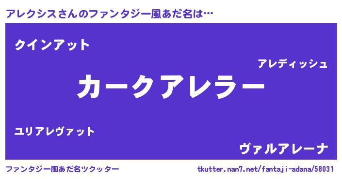 | ヒーロー風カッコイイあだ名 | 『正義の使者アレクシス』『仮面アレダー』 |