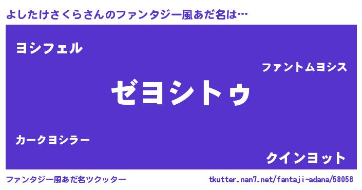 | ヒーロー風カッコイイあだ名 | 『最強戦士ヨシタケサクラ』 |