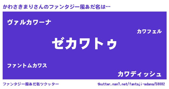 | 男性向けラノベタイトル風あだ名 | 『Re:かわさきまりから始める異世界生活』 |