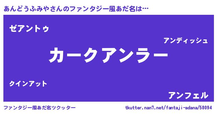 | ヘコむあだ名 | 『あんふぇ~』『あんどうふみや(爆)』 |