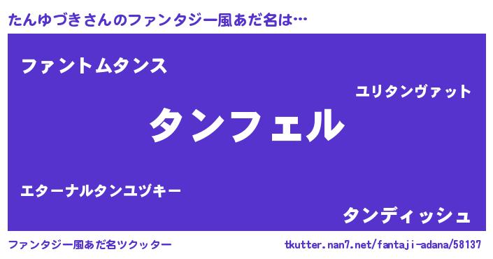 | 男性向けラノベタイトル風あだ名 | 『タンユヅキアートオンライン』 |