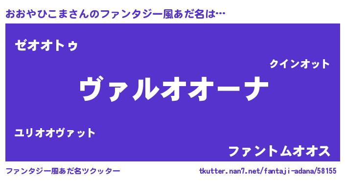 | 男性向けラノベタイトル風あだ名 | 『魔弾の王とおおやひこま』 |