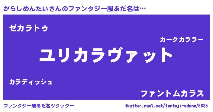 | 男性向けラノベタイトル風あだ名 | 『転生したらからしめんたいだった件』 |