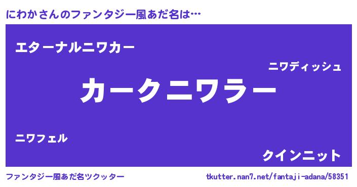 | 男性向けラノベタイトル風あだ名 | 『緋弾のニワカ』『にわかの憂鬱』 |