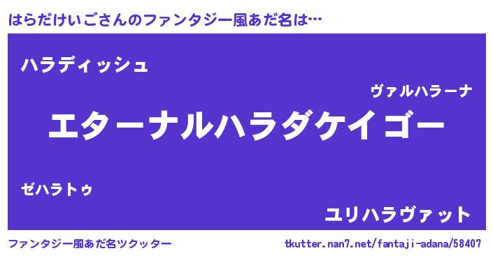 | 意味不明あだ名 | 『はらだけいごフォーエバー』 |