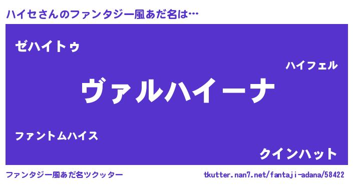 | ヒーロー風カッコイイあだ名 | 『仮面ハイダー』『最強戦士ハイセ』 |