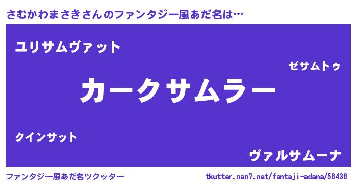 | 男性向けラノベタイトル風あだ名 | 『うちのさむかわまさきが世界を掌握している!』 |