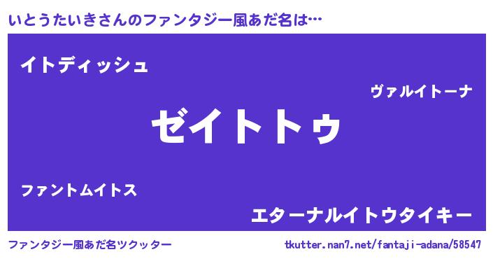 | 男性向けラノベタイトル風あだ名 | 『いとうたいきに滅ぼされるだけの簡単なお仕事です』 |