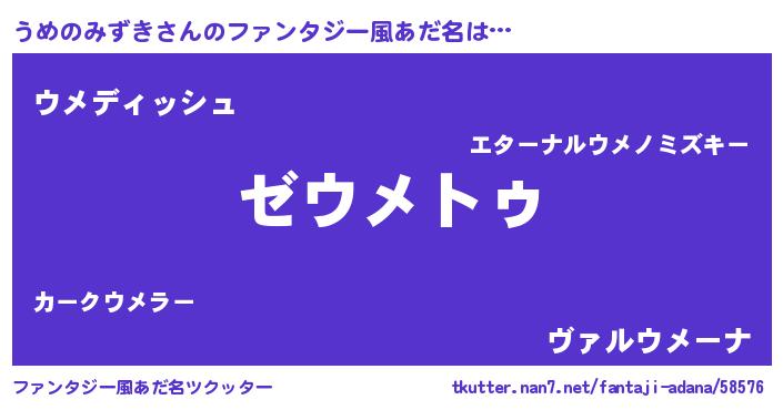 | 意味不明あだ名 | 『自称うめのみずき』 |