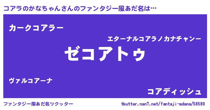 | 女子向けラノベタイトル風あだ名 | 『コアラのかなちゃんアンティーク』 |