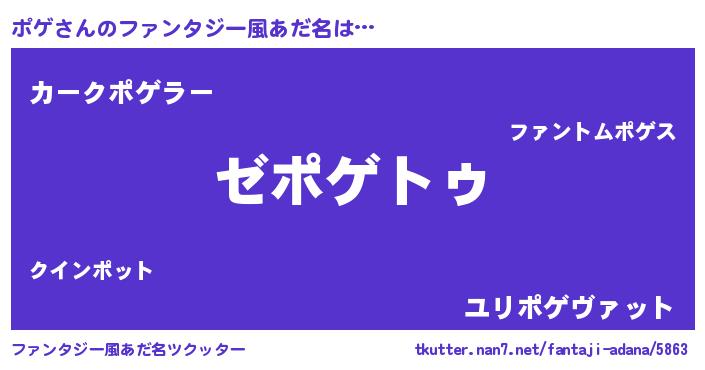 | 男性向けラノベタイトル風あだ名 | 『魔法科高校のポゲ』『ポゲスレイヤー』 |