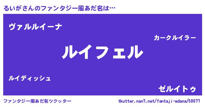 | 男性向けラノベタイトル風あだ名 | 『るいがの憂鬱』『魔弾の王とるいが』 |