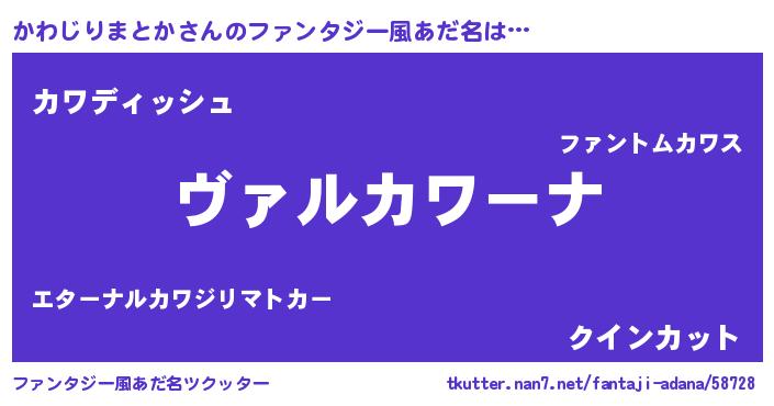 | ヒーロー風カッコイイあだ名 | 『仮面カワダー』『ネオカワジリマトカ』 |