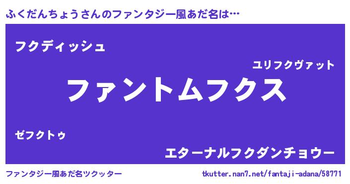 | ヒーロー風カッコイイあだ名 | 『炎刃騎士フク』『ネオフクダンチョウ』 |