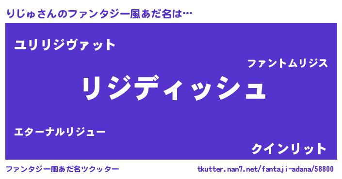 | 男性向けラノベタイトル風あだ名 | 『りじゅに滅ぼされるだけの簡単なお仕事です』 |