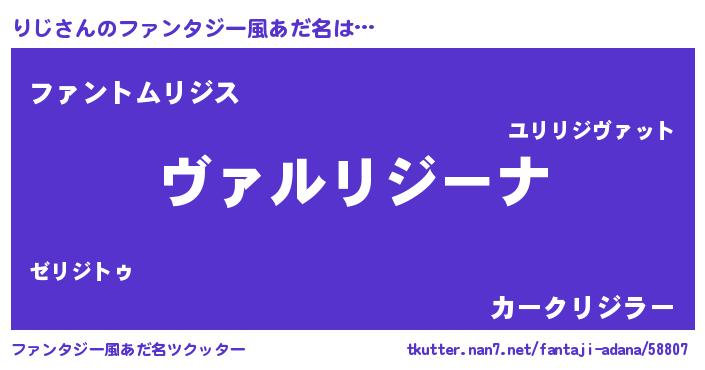 | 男性向けラノベタイトル風あだ名 | 『はたらくりじさま!』『魔弾の王とりじ』 |