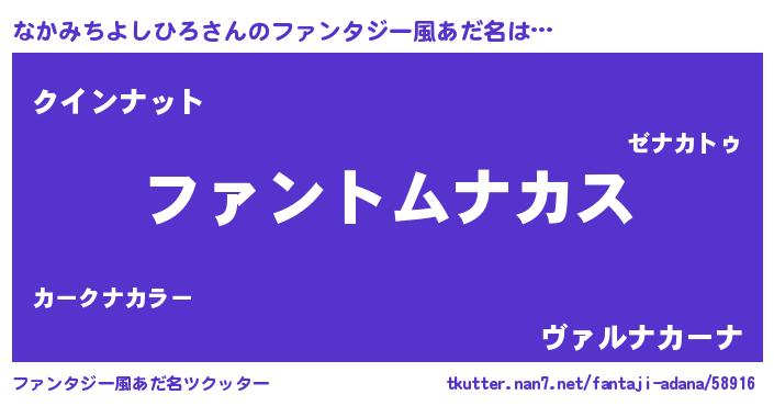 | 男性向けラノベタイトル風あだ名 | 『ダンジョンになかみちよしひろを求めるのは間違っているだろうか』 |