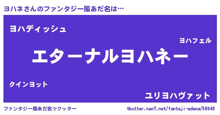 | ポケモン風あだ名 | 『ヨハネダネ』『ゼニヨハ』 |
