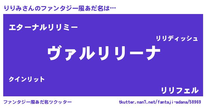 | 男性向けラノベタイトル風あだ名 | 『魔弾の王とりりみ』『りりみの憂鬱』 |