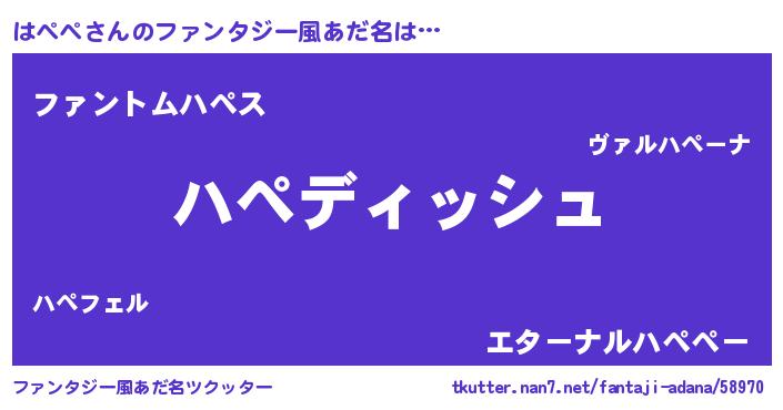 | ポケモン風あだ名 | 『ゼニハペ』『ヒハペペ』『ハーペイ』 |