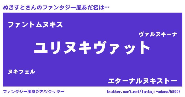 | ヒーロー風カッコイイあだ名 | 『幻影騎士ヌキ』『ウルトラぬきすとマン』 |