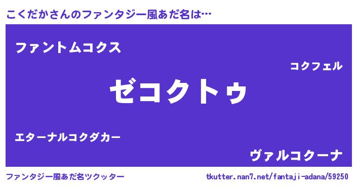 | 意味不明あだ名 | 『自称こくだか』『ペロリンこくだか』 |