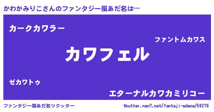 | ヒーロー風カッコイイあだ名 | 『スーパーカワカミリコ』『黄金騎士カワ』 |