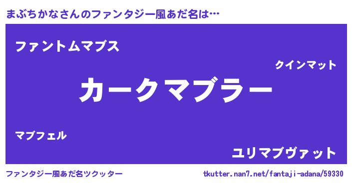 | ヒーロー風カッコイイあだ名 | 『暗黒騎士マブ』『天空の使者まぶちかな』 |