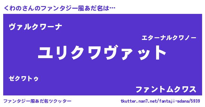 | ヒーロー風カッコイイあだ名 | 『仮面クワダー』『暗黒騎士クワ』 |
