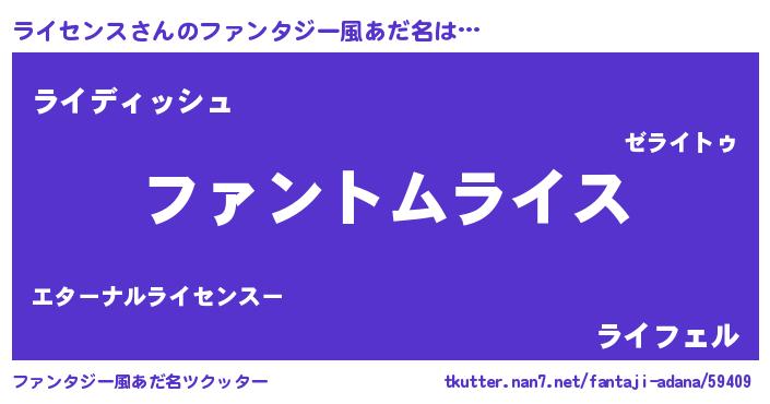 | 男性向けラノベタイトル風あだ名 | 『ライセンスの嫁は女の子じゃないと思った?』 |