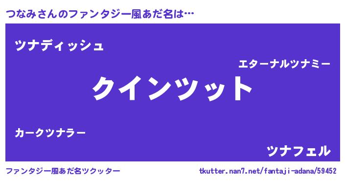 | 女子向けラノベタイトル風あだ名 | 『死神つなみの再婚』『つなみの契約王妃』 |