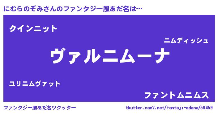 | 男性向けラノベタイトル風あだ名 | 『魔弾の王とにむらのぞみ』 |